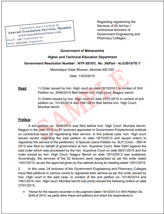 To read the original Marathi version of this Government Resolution (GR), please visit https://gr.maharashtra.gov.in/1145/Government-Resolutions and enter GR unique code as 201503131643407908.