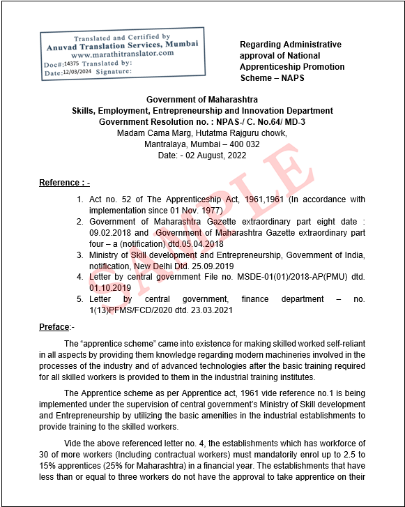 To read the original Marathi version of this Government Resolution (GR), please visit https://gr.maharashtra.gov.in/1145/Government-Resolutions and enter GR unique code as 202208021505354703.